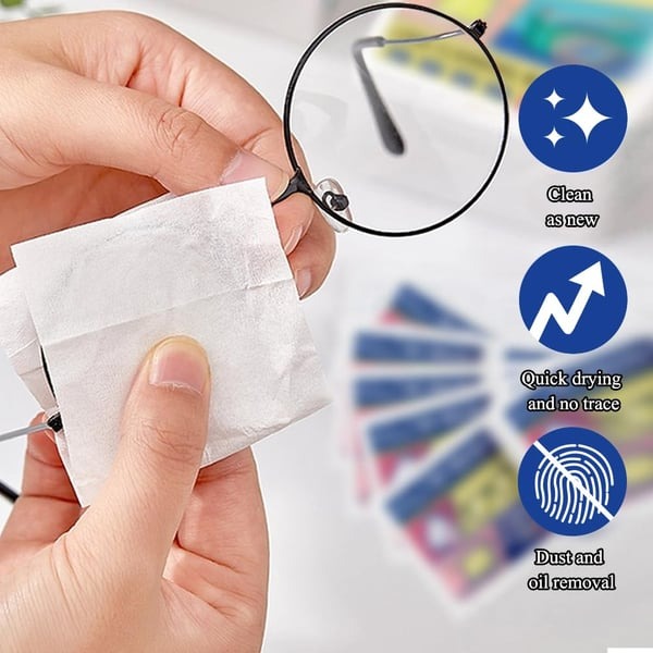Portability & Ease of Use:It comes with 100pcs screen cleaner wipes.Our eyeglass cleaning wipes come in convenient individual packaging or portable dispensers, allowing you to clean your glasses anytime, anywhere. No need for water or additional cleaning tools â just a simple swipe for instant clarity.Step 1: Pick one or more, Tearing and open up the wet wipes; Step 2: Have a quick and uniform wipe; Step 3(if needed): If the glasses are still wet, please use the cloth to wipe them.